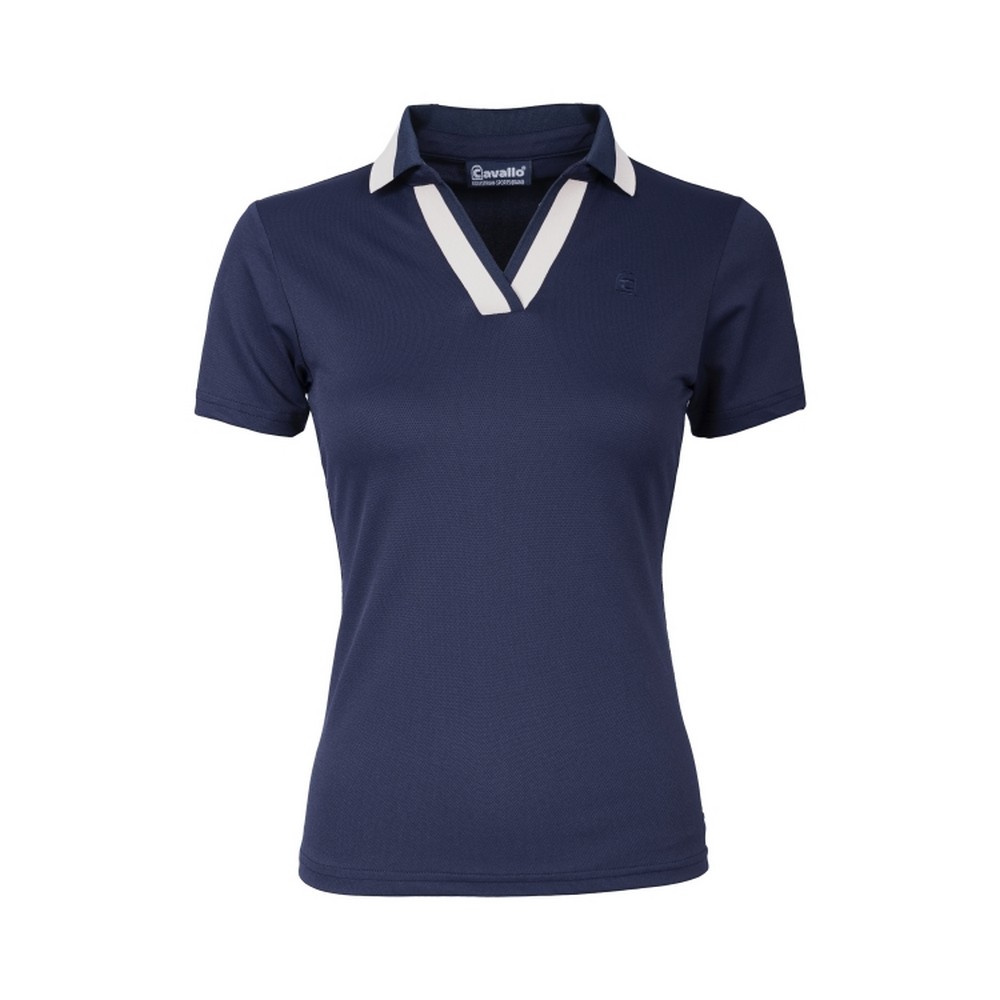 Hochgeschlossenes Poloshirt mit elegantem Umlegkragen. Bundabschluss rundherum mit Cavallo-Schriftzug.